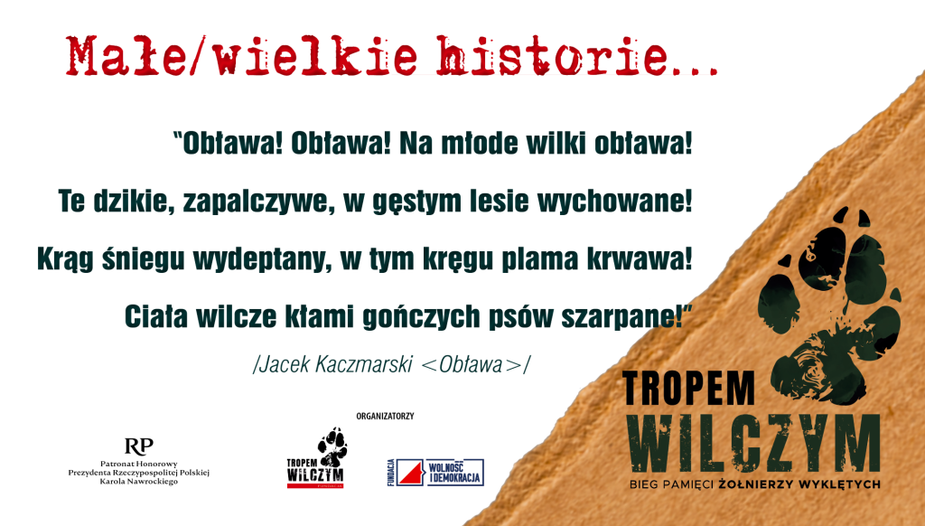 Drogi Czytelniku! To już ostatni tegoroczny felieton z serii “Małe/wielkie historie..”. Dziękuję Ci za ten wspólny czas oczekiwania na Dzień Pamięci Żołnierzy Wyklętych oraz bieg. Życzę Ci aby pamięć o Żołnierzach Wyklętych towarzyszyła Ci przez cały rok oraz żeby ich odwaga inspirowała Cię w codziennych wyborach. Do usłyszenia!